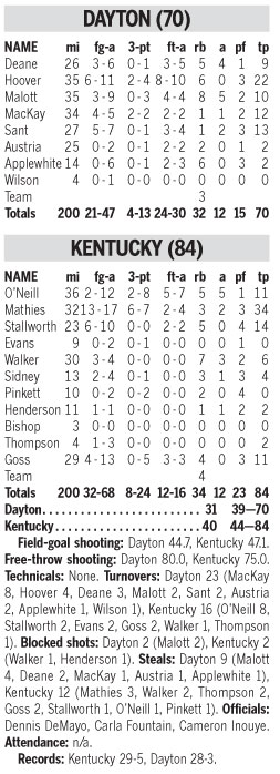 Kentucky's A'dia Mathies shot a 3-pointer in the second half against Dayton. Mathies made six threes, a career high, and tied another career high with 34 points in Kentucky's 84-70 victory.