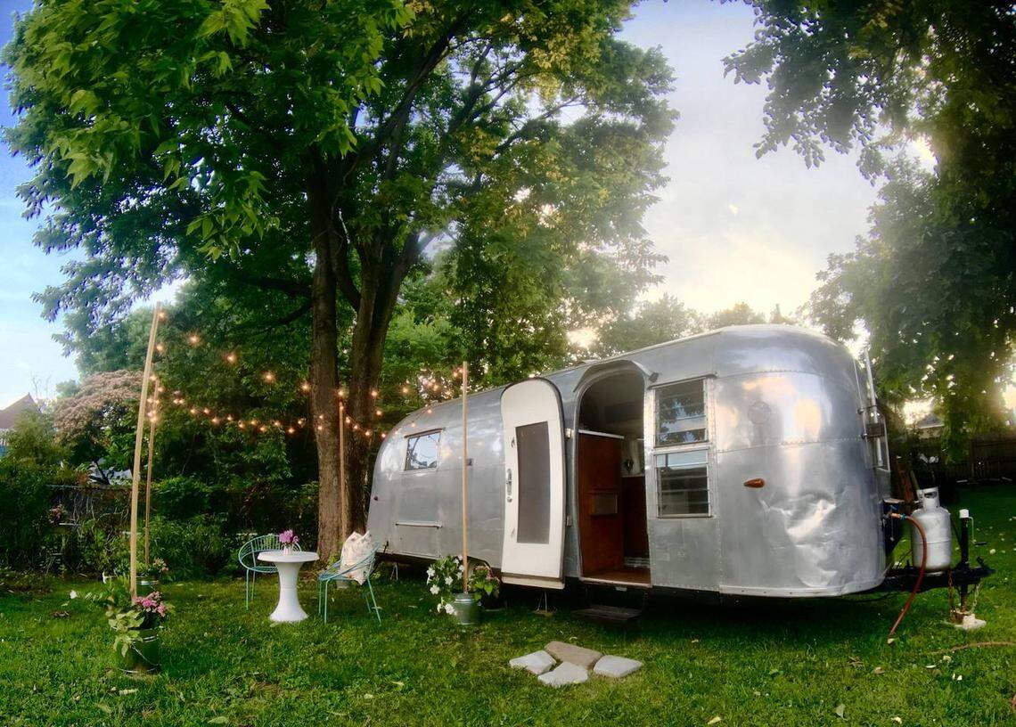 Wow factor: Fire pit and lawn chairs outside. A “vintage 1960 Airstream” behind “an 1890 Victorian house.”