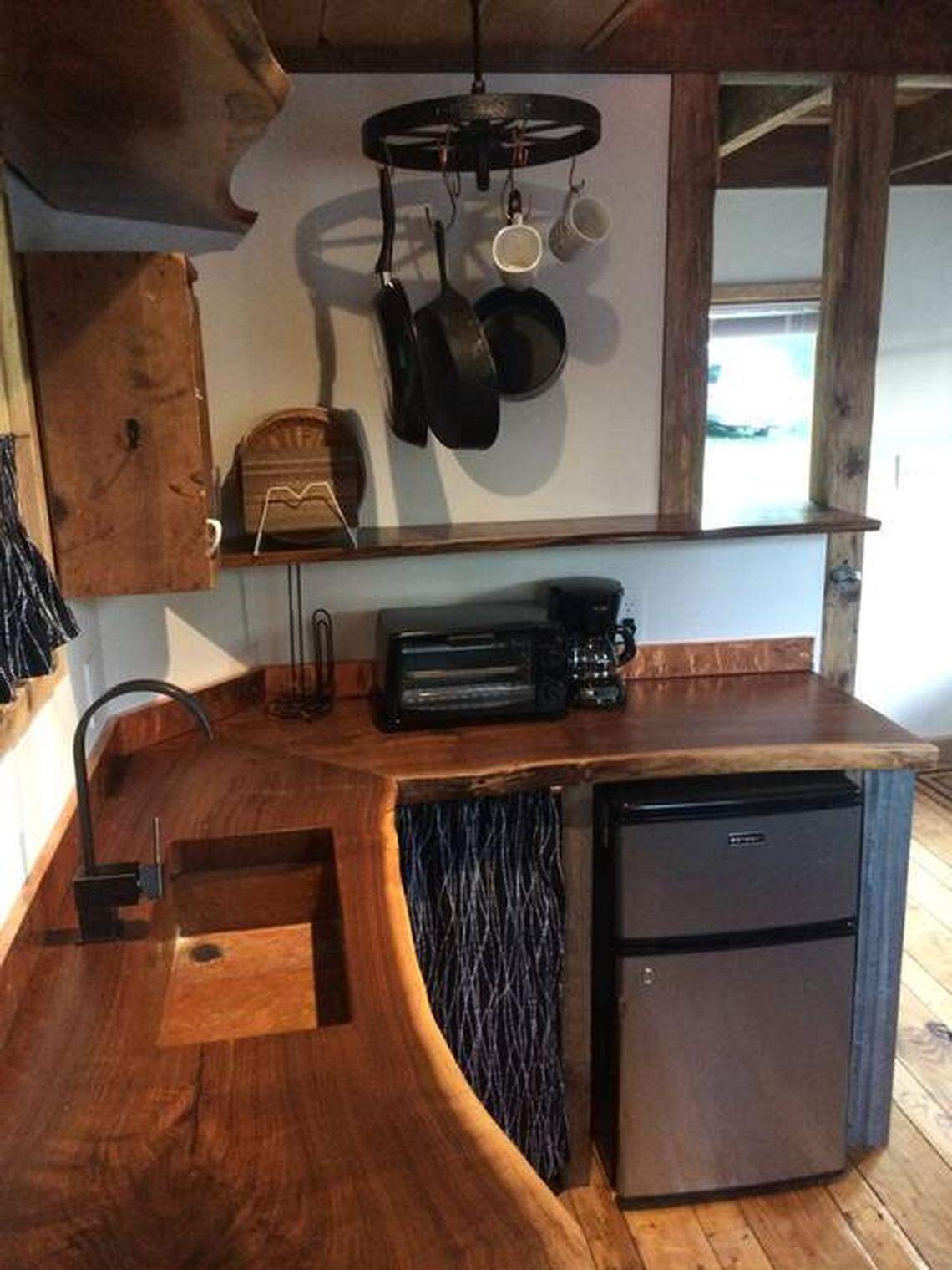 Wow factor: “Built using live-edge walnut wood for various interior parts, a spiral staircase, an antimicrobial copper sink and copper shower, and many other reclaimed/recycled building materials.” Live-edge wood is a style in which the builder/designer incorporates the natural edge of the wood into the finished piece.