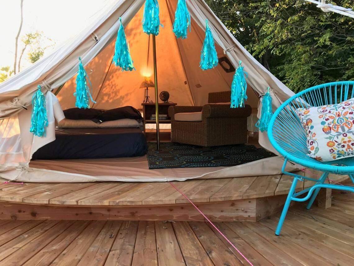 Wow factor: “The waterproof canvas Yurt features a double bed with plush Casper mattress, premium bedding, comfy chair, reading light and power source.”