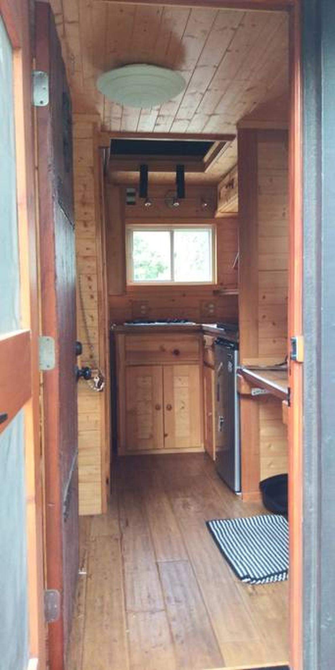 Description: The tiny house can be placed in any campground location within a 50-mile radius; campground fees are extra. $63 a night including fees and discount. AC or heater available, depending on season. Hooks up to water or fresh water tanks. Loft sleeping area and fold-out couch to watch TV on the Blu-Ray player.