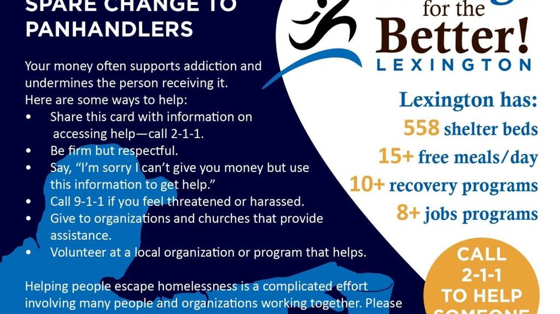 The city of Lexington has launched a campaign to discourage people from giving to panhandlers and encourage donations to the nonprofits that serve them.