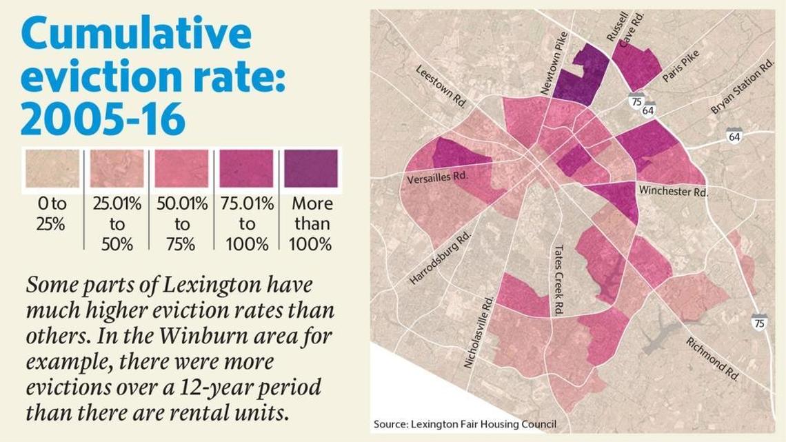 Renters in the Winburn area were more likely to be evicted from their homes and apartments than any other area in Lexington, a recent analysis of Fayette County court-ordered evictions over a 12-year period shows.