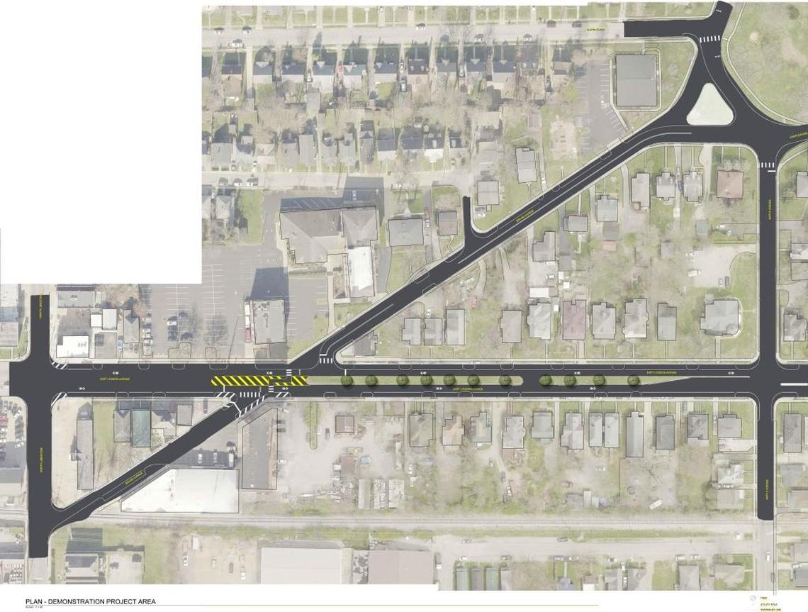 “Vehicular, pedestrian and bicycle safety have long been a concern of the neighborhoods and businesses in the project area,” says Scott Thompson, a transportation planner with the city. “This demonstration project is a low cost opportunity to measure the effectiveness of temporary solutions. Projects like this one often become capital projects for permanent installation.”