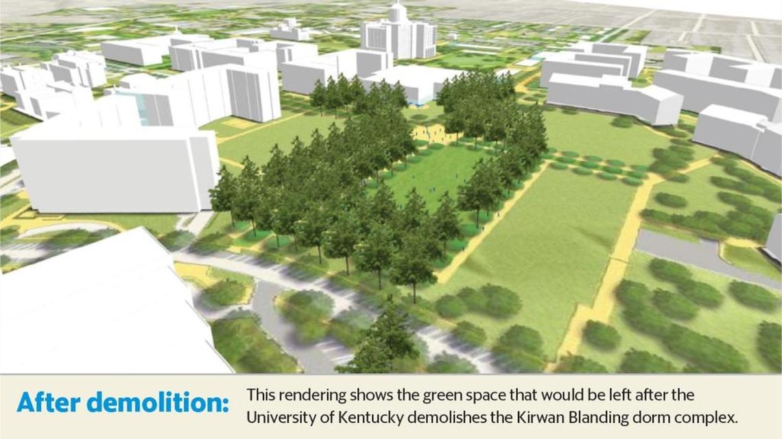 UK’s Kirwan and Blanding towers — 50-year-old fixtures of the Lexington skyline and former homes to thousands of students — now resemble the mangled ruins of a bygone era of student dorm living.