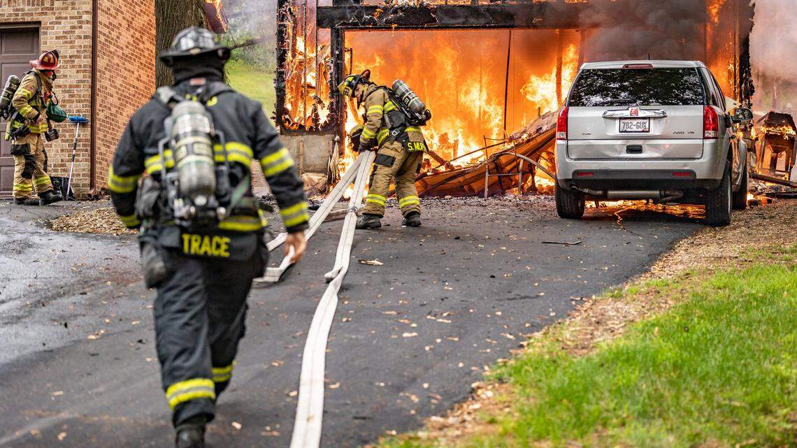 When firefighters arrived, they found the detached garage engulfed in flames. The fire spread to the main house, the department said.