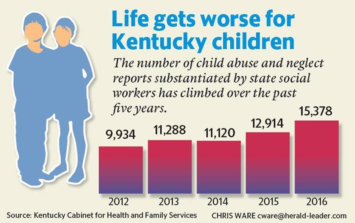 The number of child abuse and neglect reports that are substantiated in Kentucky has climbed from 9,934 in 2012 to 15,378 in 2016.