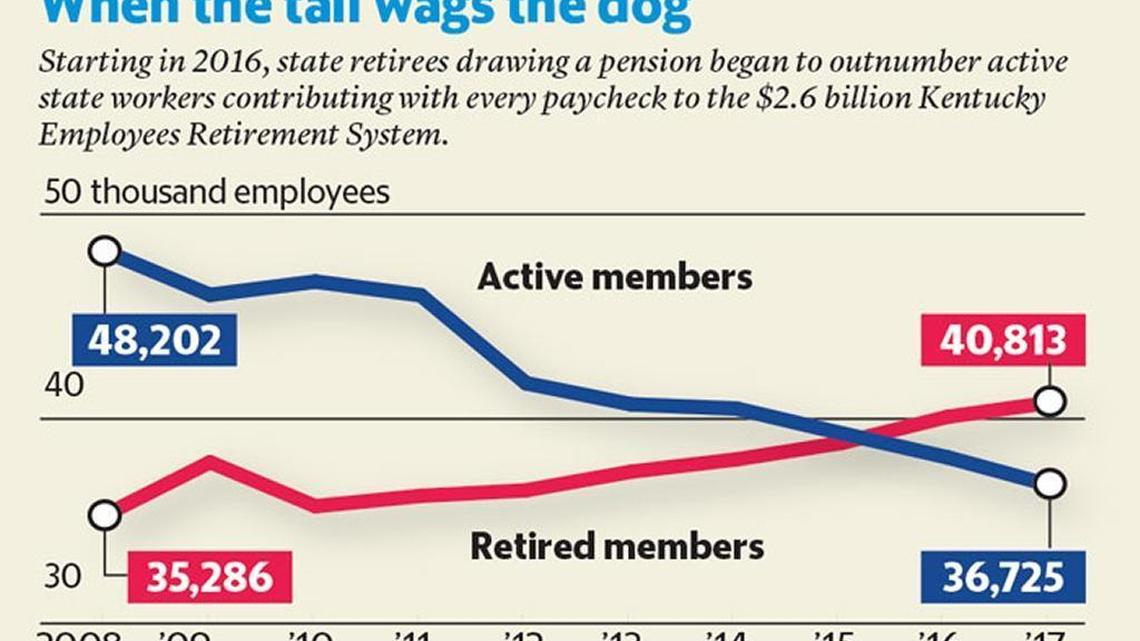 Once she hit the exit, the number of retirees drawing a pension from the Kentucky Employees Retirement System (Non-Hazardous), the struggling $2.6 billion fund that serves most of state government, officially topped the number of active workers paying into it.