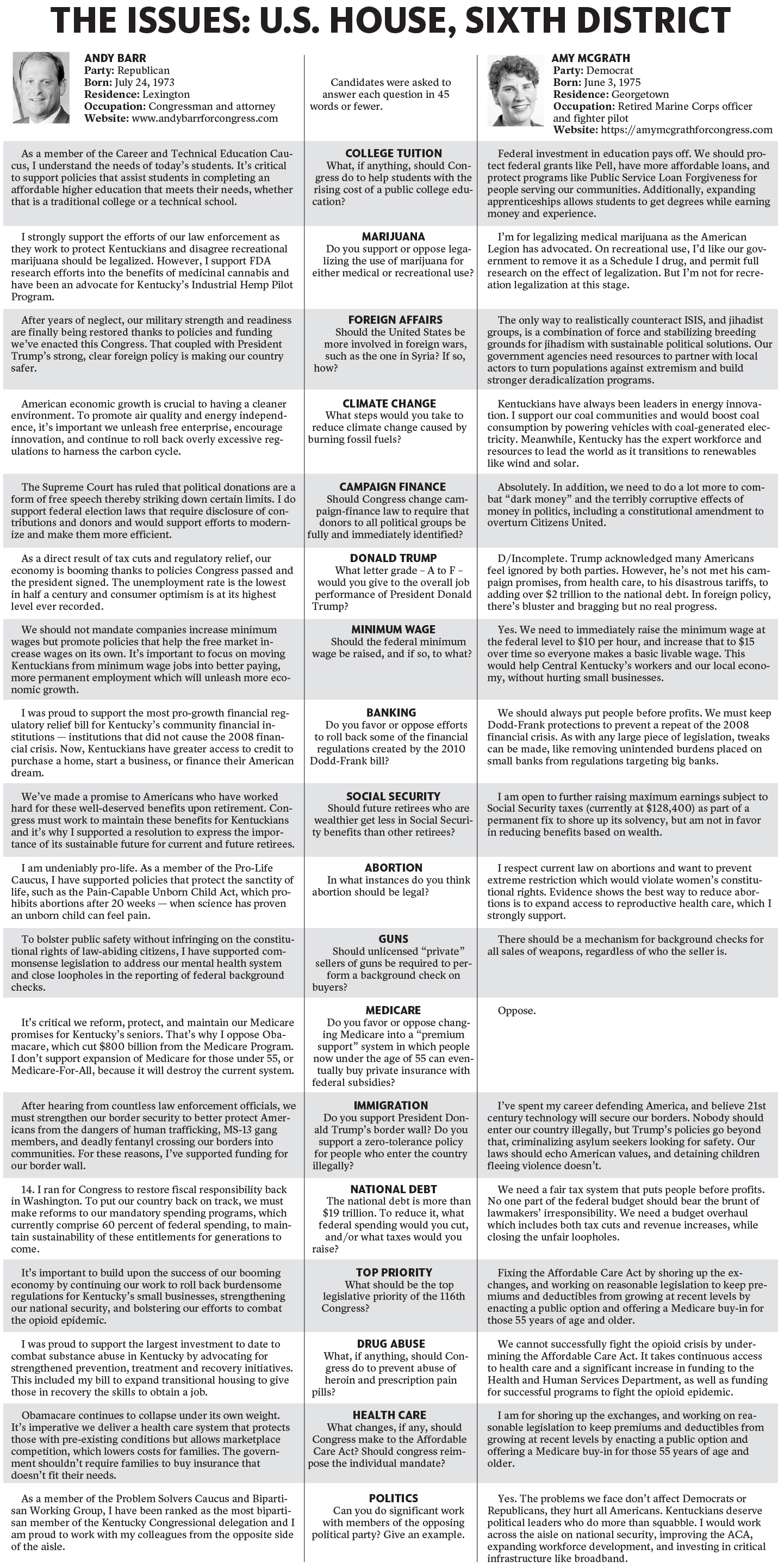 Voters’ Guide: Where Amy McGrath and Andy Barr stand on 18 key issues for KY voters