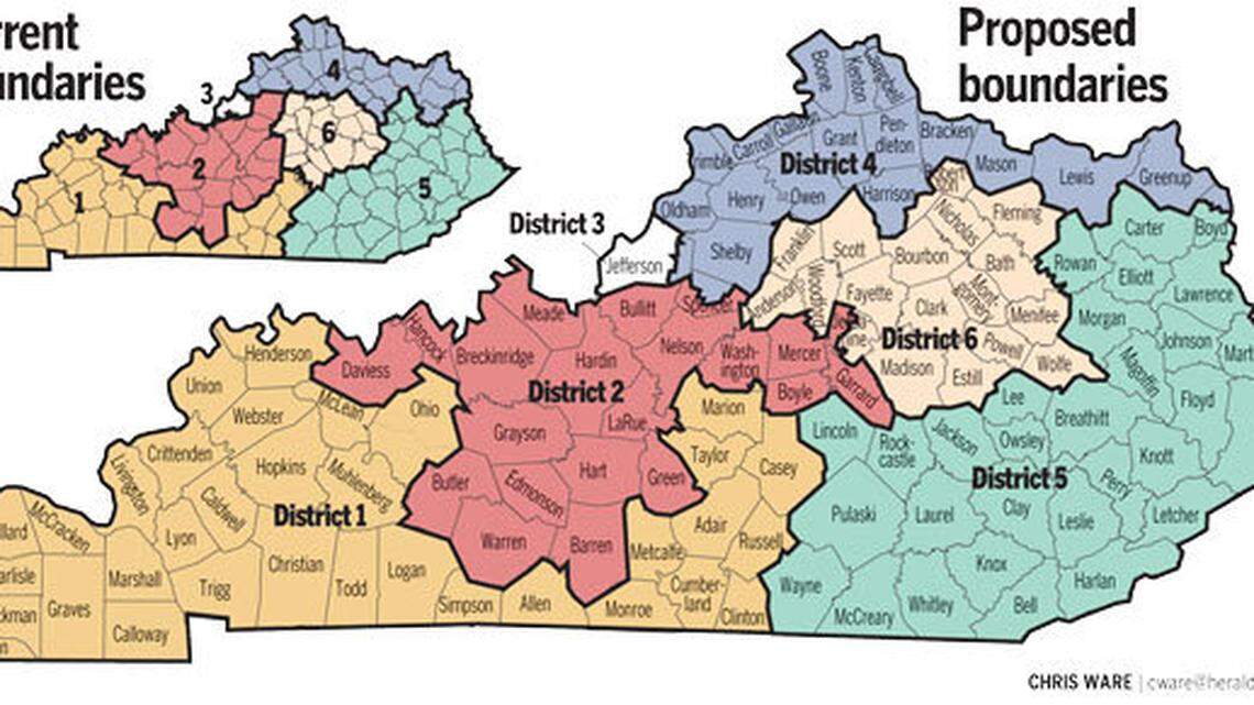 The new map in House Bill 302 moves the western part of Jessamine County, including Wilmore, and all of Garrard, Mercer and Boyle counties from Central Kentucky's 6th District to the 2nd District, which extends west to Owensboro. Lincoln County was moved to Eastern Kentucky's 5th District.