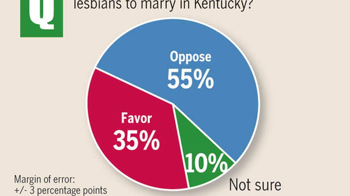 A new Herald-Leader/WKYT Bluegrass Poll found that 55 percent of registered voters oppose same-sex marriage, compared with 35 percent who support allowing gays and lesbians to marry in Kentucky. Ten percent weren't sure.