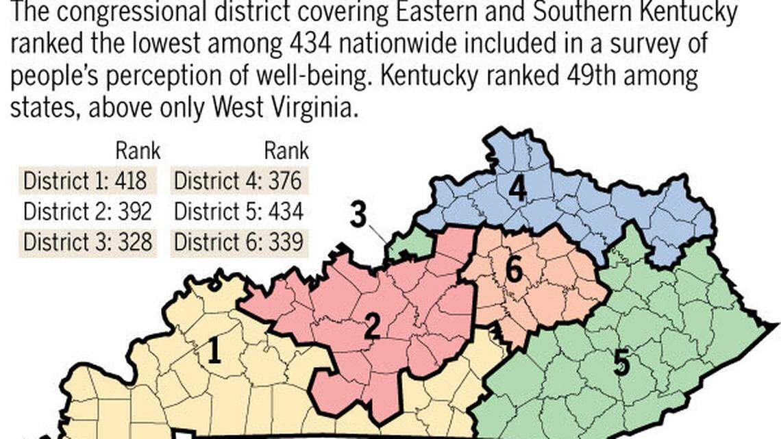 The district covering Eastern and Southern Kentucky ranked the lowest among 434 nationwide included in a survey of people's perception of well-being.