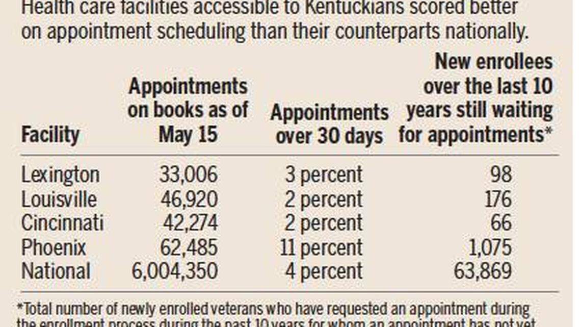 In the Lexington VA, 3 percent of appointments had required a wait of more than 30 days beyond the desired date. In Louisville, it was 2 percent. In the Phoenix VA 11 percent of appointments required a wait of 30 days or more, with the deaths of as many as 40 veterans allegedly caused by these delays.