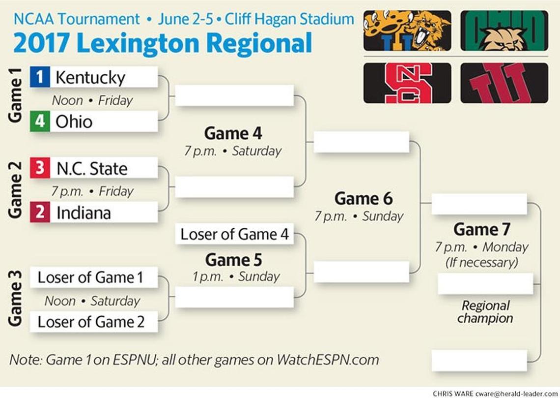 This story was originally published June 1, 2017 at 6:43 PM with the headline "A guide to the NCAA baseball regional in Lexington: Bracket, tickets, TV, scouting reports."
