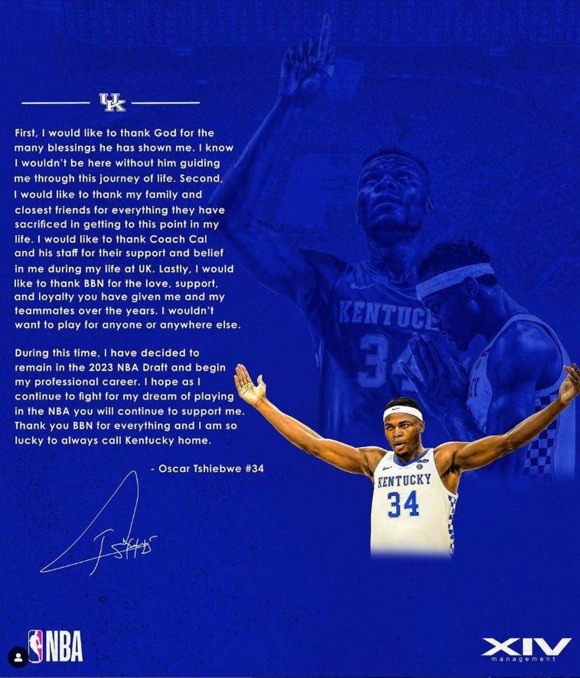 “I believe Kentucky’s going to be great, even without me,” Tshiebwe declared.