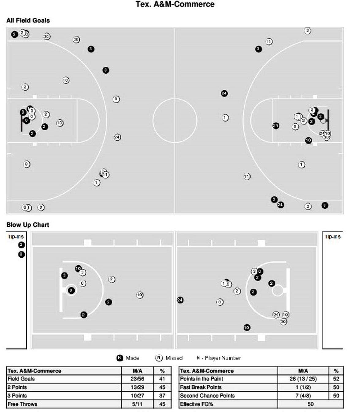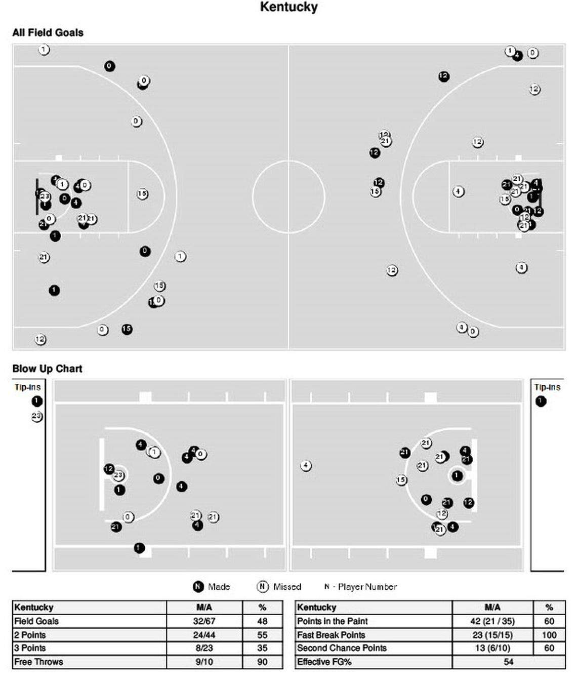 Let’s take a look below at the shot charts for both Kentucky and Texas A&M-Commerce for a more in-depth look at how each team’s offense flowed during the season opener.