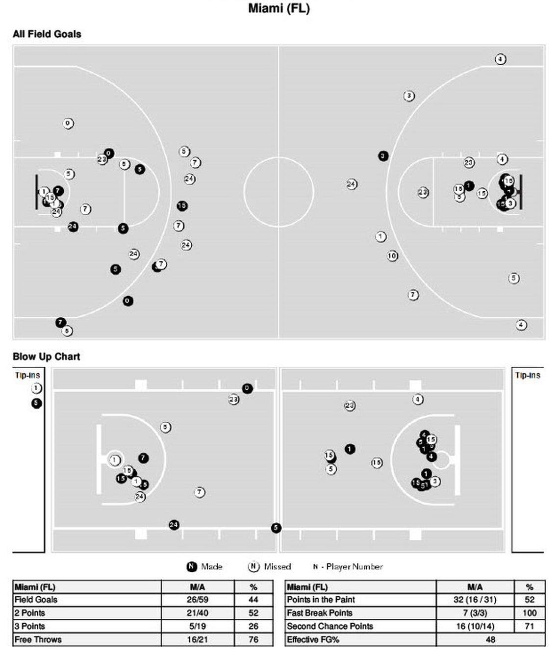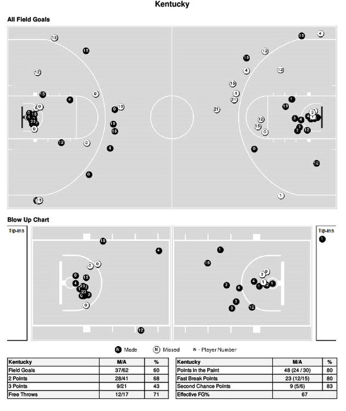Let’s take a look below at the shot charts for both Kentucky and Miami for a more in-depth look at how each team’s offense flowed Tuesday night.