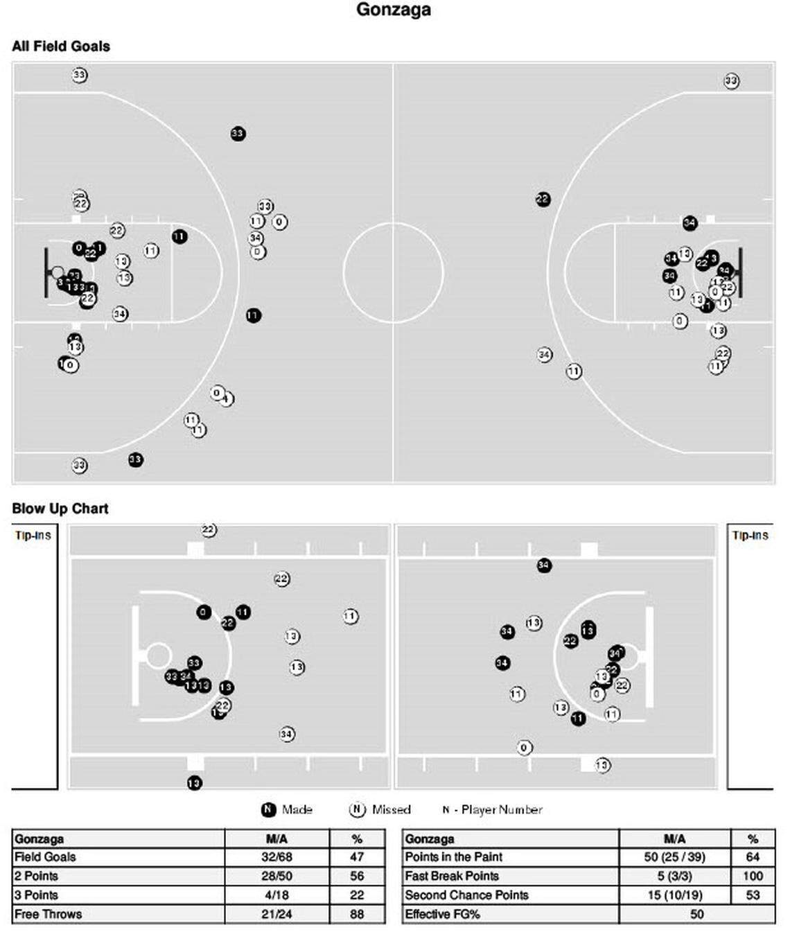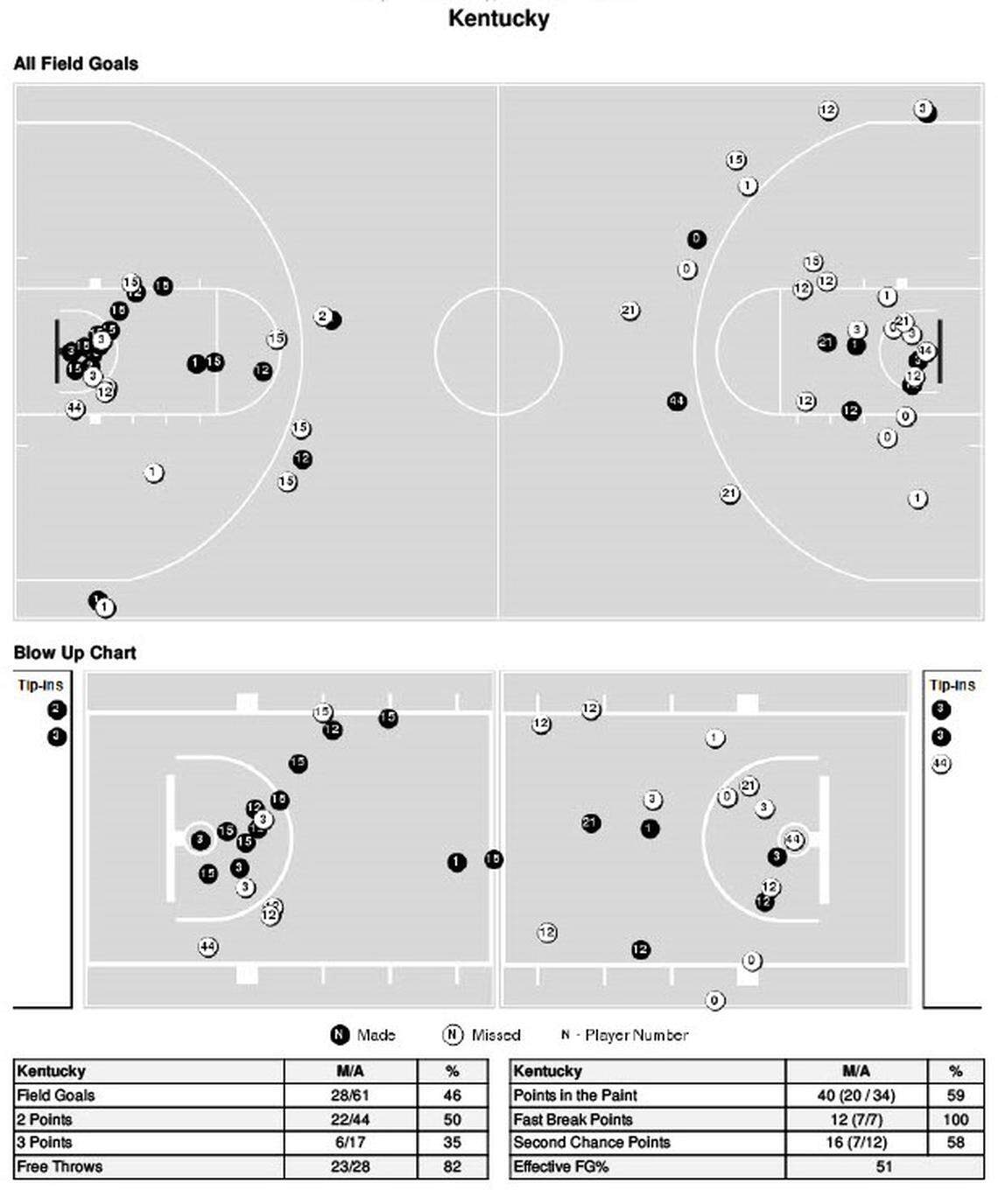 Let’s take a look below at the shot charts for both Kentucky and Gonzaga for a more in-depth look at how each team’s offense flowed Saturday.