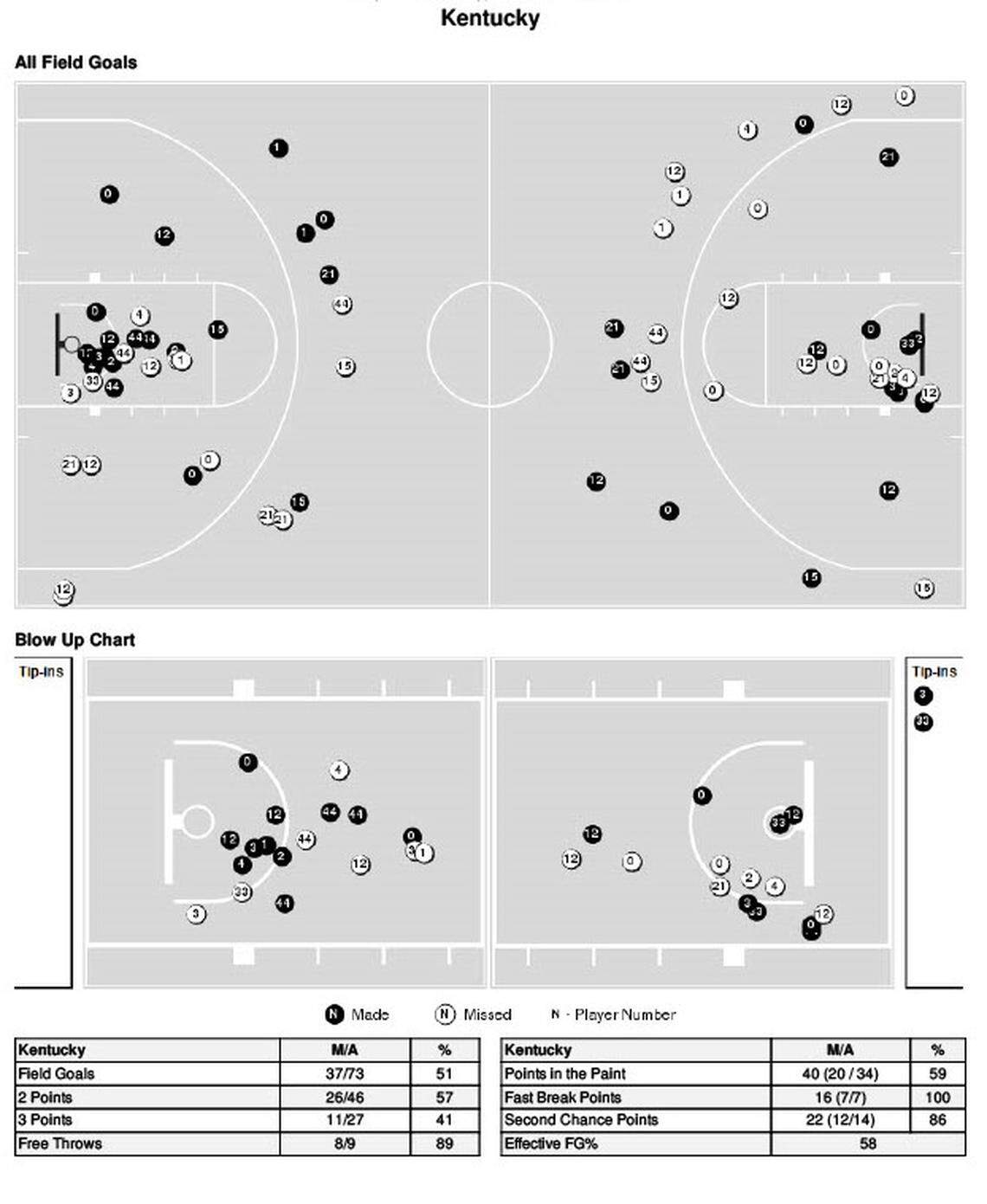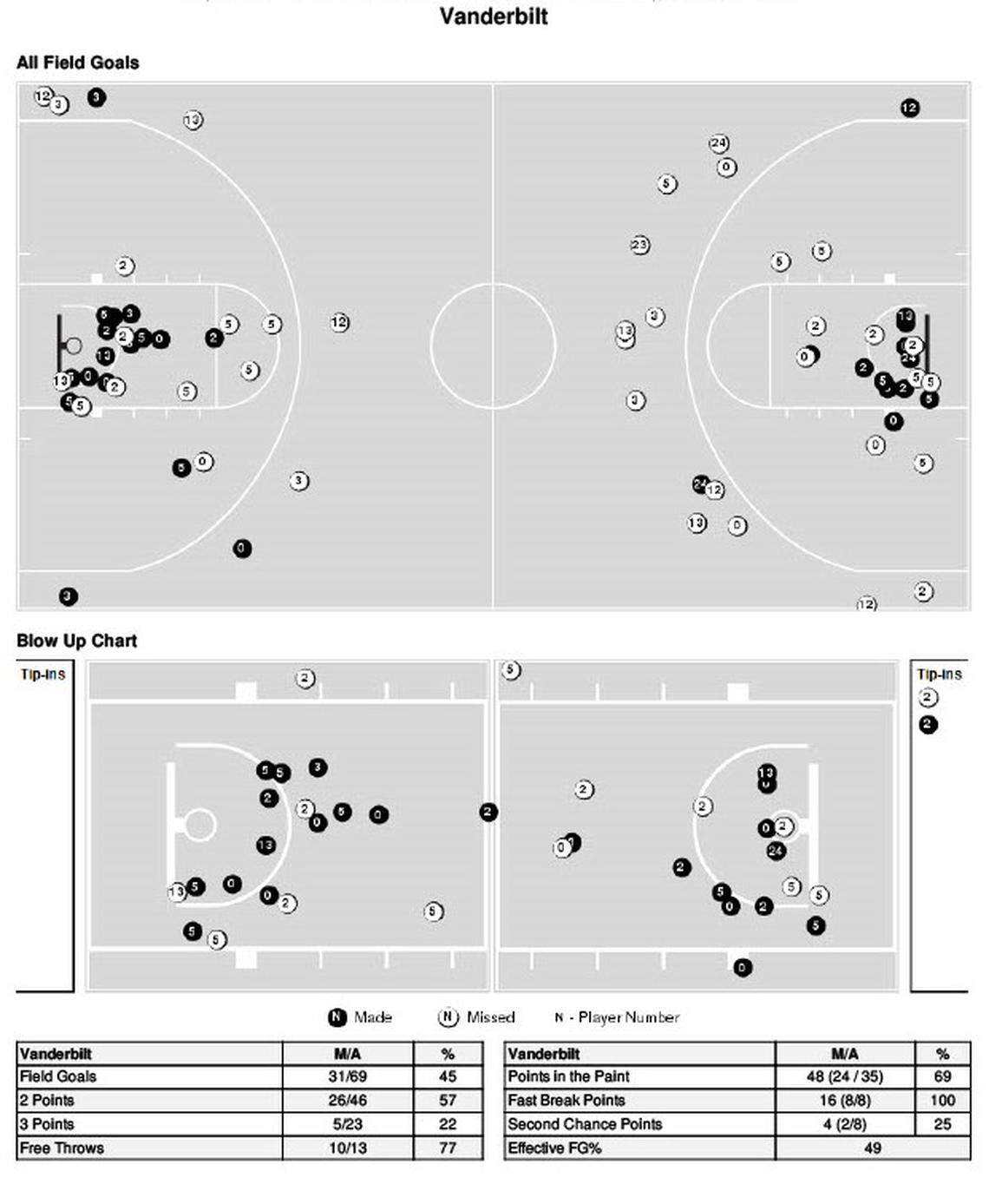 Let’s take a look below at the shot charts for both Kentucky and Vanderbilt for a more in-depth look at how each team’s offense flowed Wednesday night.