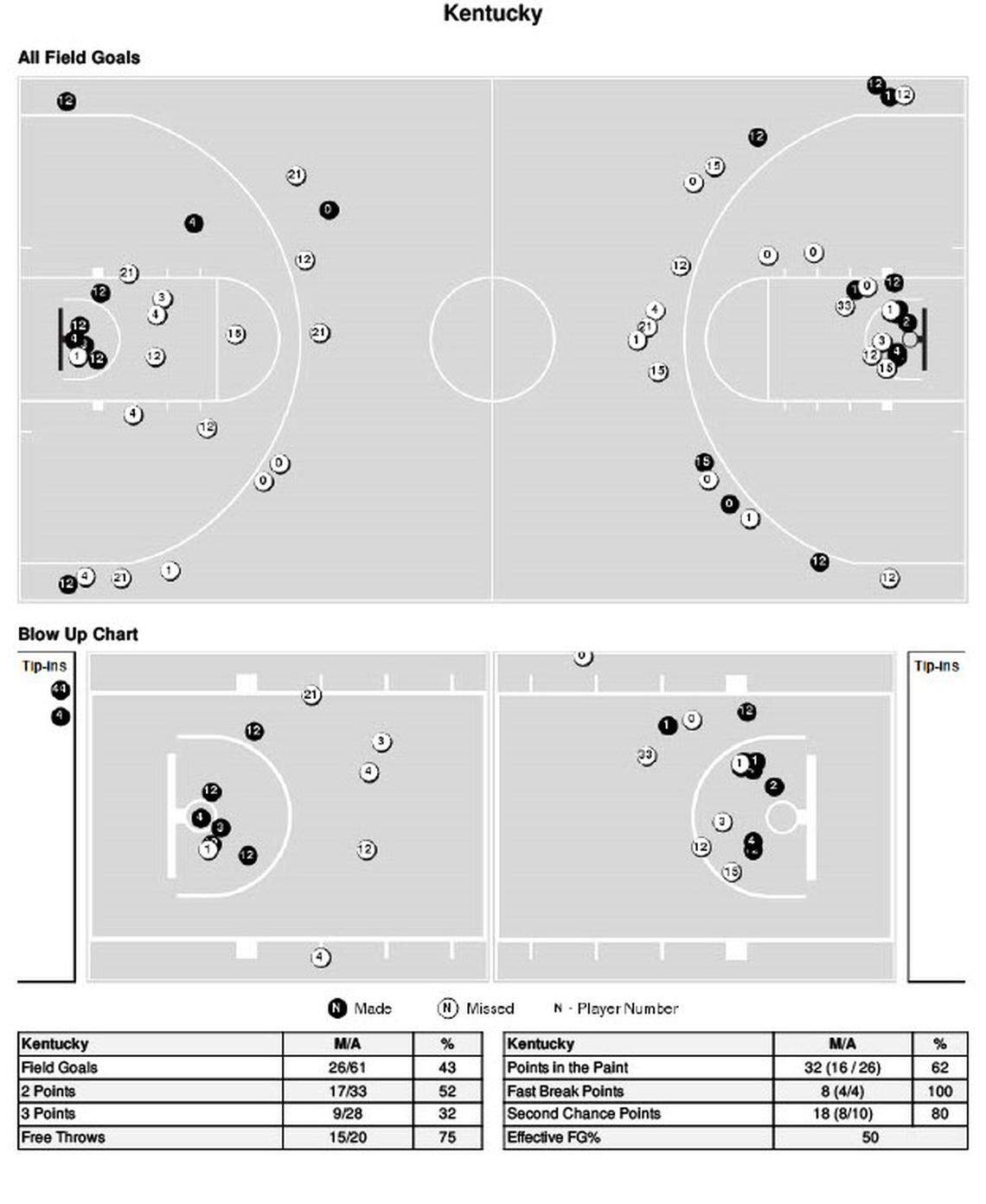 Let’s take a look below at the shot charts for both Kentucky and Oakland for a more in-depth look at how each team’s offense flowed Thursday.