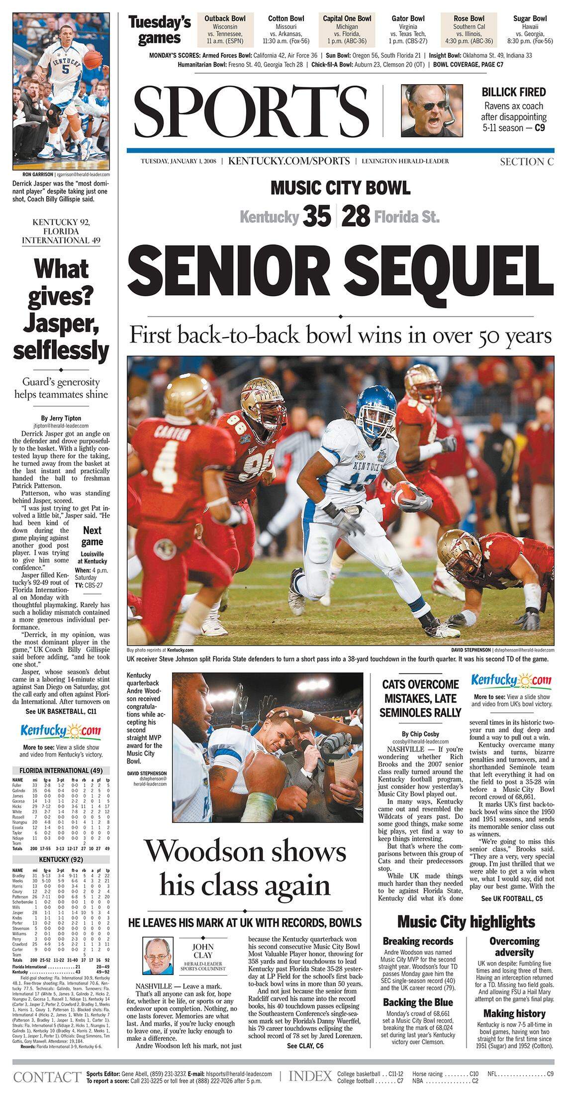 SENIOR SEQUEL; First Back-To-Back Bowl Wins in Over 50 Years; Cats Overcome Mistakes, Late Seminoles Rally