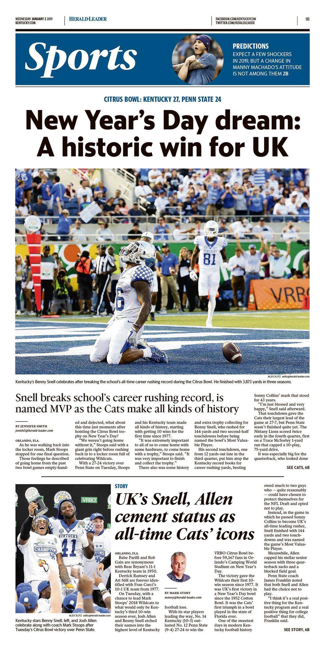 ”There also was some history and extra trophy collecting for Benny Snell, who rushed for 144 yards and two second-half touchdowns before being named the bowl’s Most Valuable Player.
